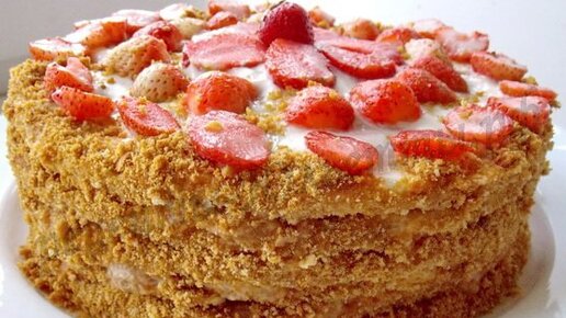 Медовый торт с клубникой – рецепт несложный, но очень красивый и вкусный! Нежный крем из взбитой сметаны, а сочности и кислинки добавляют ягоды клубники. Можно вместо клубники использовать малину, тоже будет очень вкусно. Готовьте, получайте удовольствие от десерта! Как приготовить медовик с клубникой. Время приготовления 2 часа.