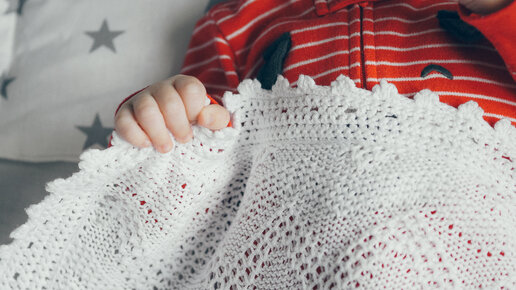 Не так давно я стала мамой, но до рождения ребёнка полностью отрицала необходимость иметь плед в приданном малыша. Как же глубоко я ошибалась!  В одной из предыдущих статей я писала, как пришла к вязанию пледа и описывала сам процесс. Сегодня подробнее о том, как мы его используем, а вы сами решите, нужен ли он вам, и стоит ли его вязать.  Реальный опыт использования пледа 1. Первым применением пледа была выписка из роддома. К сожалению, в нашем местном роддоме про пледы не слышали и завернули ребёнка, как в плёнку - уголком...