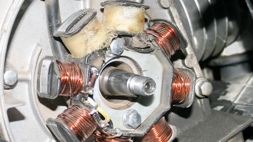 Основная проблема при установке ксенона на скутеры с моторами 139QMB (4-х тактный), 1E40QMB (2-х тактный) состоит в том, что изначально головная фара и габариты питаются от переменного тока, а мощность оригинального реле-регулятора слишком мала, чтобы компенсировать потери при работе ксеноновой лампы. Мы покажем практическое решение проблемы. Итак, последовательность следующая: 1. Снимаем ротор генератора. (Обещаем в скором времени написать простое руководство по этой операции). Видим следующую картину: 2...