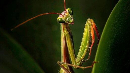 Богомол - страшный и кровожадный хищник поедает свою жертву (впечатлительным не смотреть!)