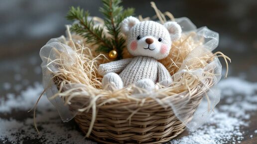 Когда маленькое вязаное чудо готово отправиться к своему новому хозяину, начинается самая волшебная часть – создание праздничной упаковки! За время работы с пушистыми медвежатами и очаровательными зайчиками удалось собрать целую коллекцию идей, которыми просто невозможно не поделиться в преддверии Нового года. 1. "Уютное гнёздышко" Представьте себе крохотную корзинку, выстланную мягким сеном или натуральной рафией, припорошенной искусственным снежком. Наша вязаная малышка уютно устраивается в этом гнёздышке, а сверху – прозрачная органза с россыпью крошечных серебристых звёздочек...