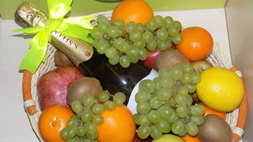 Подарочная корзина с фруктами и вином своими руками.