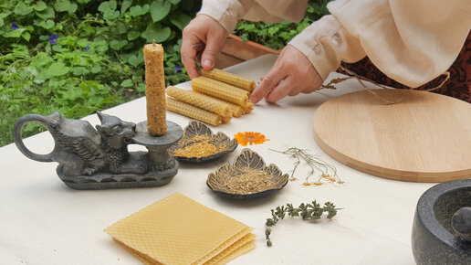 Эко-свечи из настоящей вощины и трав, пахнущие медом. Своими руками.