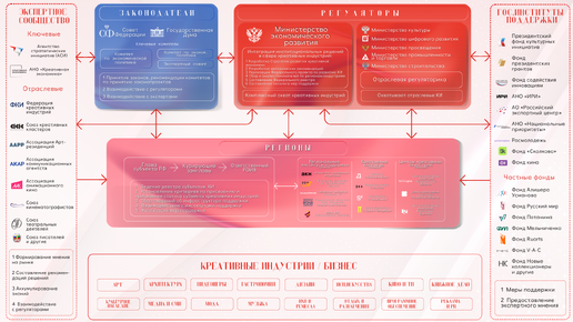 Хотите поделимся нашим негодованием? Мы тут постоянно рассказываем про мероприятия, меры поддержки, конкурсы и различные возможности. Но как бы мы не старались выступать в роли этаких просветителей, всех интересует другое. Знаете, что мы слышим отовсюду? На мероприятиях, закулисных встречах, даже в сообщениях нас преследуют одни и те же вопросы: Как сегодня вообще устроены креативные индустрии? Кто за что отвечает, кто с кем взаимодействует, куда бежать — в регион, в министерство, в ассоциацию или сразу «в поддержку»? Вопросов много, ясности у всех еще меньше...