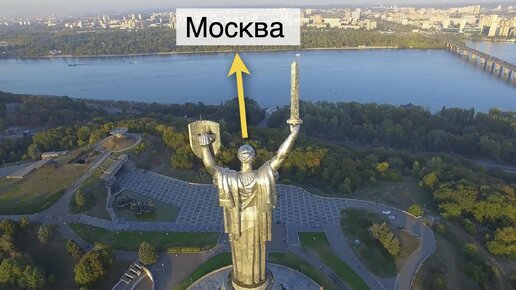Да, вот такая вот новая версия от наших соседей из пшенично-небесного государства (если описывать цвета флага). "Родина-мать", якобы, намеренно установлена так, чтобы прикрываться щитом от Москвы и грозить ей мечом. – Все правильно! Потому что мы всегда от Москвы защищались! – лично слышал эту версию из уст представителя Киева. Мне даже пришлось залезть в онлайн-карты и несколько минут при помощи линейки проверять данное утверждение. Получилось вот так: В общем, строго говоря, скульптура обращено щитом и мечом не совсем на Москву...