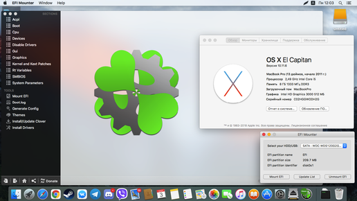 Всем привет, сегодня я расскажу, как я настраивал Clover после установки macOS. И так, после того, как вы установили macOS, вы обнаружили, что он не включается. Это всё из-за того, что не установлен/не настроен загрузчик. Сегодня мы разберём, как его настроить. 1. Монтирование EFI-раздела. Для начала вам нужно смонтировать EFI раздел. Это нужно для установки KEXT-ов. Вам понадобится программа EFI Mounter. По умолчанию она находится в папке Postinstall. Выбираем модель вашей жёсткий диск и нажимаем на кнопку Mount...