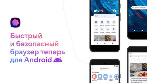 Российская компания Mail.ru Group запустила браузер Atom для Android. В браузер встроена платформа VK Mini Apps, в которой доступны мини-приложения для выполнения ежедневных дел. В нём также реализована лента рекомендаций «Пульс», транслирующая пользователю материалы согласно его интересам. Atom интегрирован с соцсетью «ВКонтакте», поэтому можно проходить авторизацию в браузере через единый аккаунт VK Connect...
