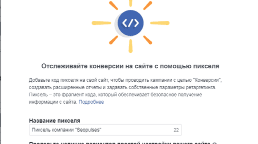 Установка пикселя Facebook позволяет собирать аудиторию посетителей сайт и фиксировать их действия на сайте для запуска ремаркетинговых кампаний в социальной сети. Получения кода пикселя Facebook Для того, чтобы получить код пикселя Facebook потребуется посетить рекламный кабинет (Ads Manager) и кликнуть на «Меню» (слева-сверху), после чего выбрать «Пиксели» (вкладка Events Manager). На появившейся странице будут указаны все ранее добавленные счетчики, а для создания нового понадобиться кликнуть на «Добавить новый источник»...