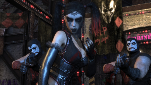 Память уже не та, но изначально в серию «Arkham» я полез вроде бы как раз из-за данного DLC — очень уж было интересно посмотреть на Харлин (я не шибко интересовался серией и не знал, что там в целом есть Харли, но тут заголовок, как бы, намекнул). И да, сейчас DLC вновь перепрошёл. Поехали! Когда Джокер помер, Харли была вне себя от горя. Настолько, что решила рассчитаться с Бэтменом (хотя, объективности ради, Бэтс спас бы Джокера. И их кошки-мышки продолжились бы). Тяночка заманила детектива на завод, прикрываясь пленными полицейскими, где, ВНЕЗАПНО, смогли вырубить Бэтса (повезло)...