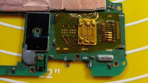 Попался давече интересный случай мимо которого мне было сложно проскочить, не поведав его вам. Случай сам по себе банальный, но решение получилось забавным. Сломанных контактных групп для сим карт мне попадалось в практике много, но данный аппарат прямо скажу удивил. Владелец трубки похоже толи психанул, толи в силу плохого зрения умудрился затолкать сим лоток обратной стороной, т.е. перепутав верх с низом. Когда понял, что произошло, не придумал ничего лучше как с помощью отвёртки с плоским шлицем выдернуть выковырять его обратно...