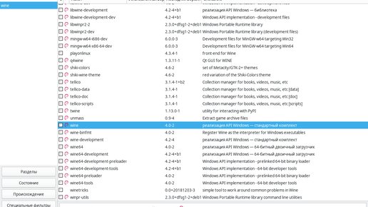 Установка Wine в Астре 1.7.4