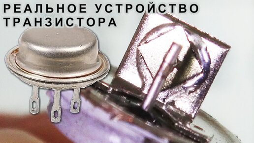 То что транзистор это полупроводниковый прибор знают многие, но мало кто знаком с тем что у транзистора внутри. Чтобы понять устройство этого полупроводникового устройства, вскроем его корпус и внимательно рассмотрим содержимое. Большинство биполярных транзисторов имеют три вывода называющиеся: База, Коллектор, Эмиттер. В схемах обозначение этих выводов рисуют так Но нас интересует - Как выглядит устройство и структура транзистора в корпусе , как располагается кристалл полупроводника и как он закреплен? Вскрыв корпус , мы видим металлическую основу к которой прижат кристалл кремния...