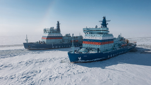 Российский атомный ледокольный флот — единственный в мире, больше ни у одной страны нет таких судов. Атомные ледоколы начали производить ещё в СССР — первым был ледокол «Ленин», который работал в Арктике с 1959 по 1989 год. Универсальные атомные ледоколы проекта 22220 могут работать без перезарядки топливом до 7 лет, запасов продовольствия хватает более чем на полгода — поэтому они подолгу не заходят в порт. Даже команда меняется в море, когда ледоколы встречаются во льдах. Для сравнения — автономность...