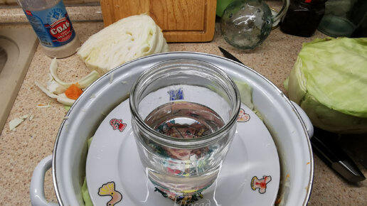 Чтобы капуста заквасилась на следующий день, добавляю блюдце закваски. Отличный результат с любой капустой