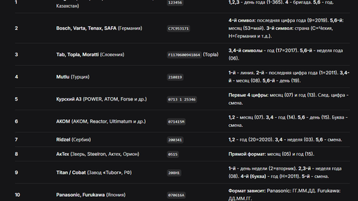 Добрый день, уважаемые автомобилисты! Сегодняшняя статья о том, как определить дату выпуска аккумулятора по маркировке на примере некоторых моделей уккумуляторов. При покупке аккумулятора стоит обратить внимание на дату его выпуска - чем новее АКБ, тем лучше...