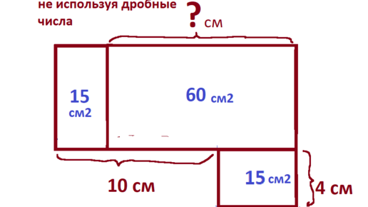 Найти длину прямоугольника, и постараться не использовать дробные числа