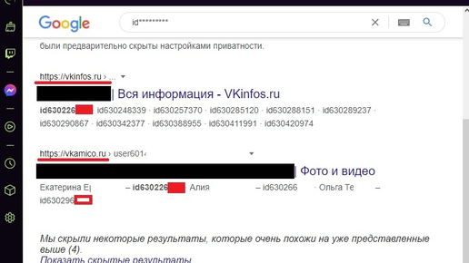 3. В результатах поиска, могут выйти ссылки на сайты сканирующих по ВК сервисов, причем эти сканирующие сайты вам сразу показывают ссылки на людей, у которых может быть в друзьях владелец закрытого аккаунта...