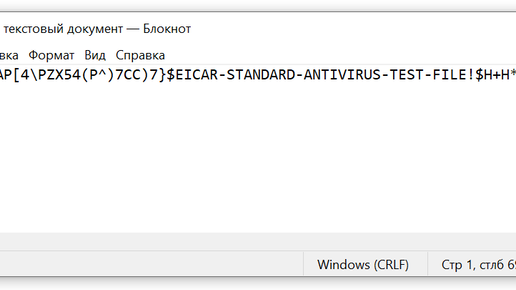 Работает ли антивирус на моем компьютере? Найдет ли он зараженный файл в моей папке? А на флешке? Как это проверить? Не тащить же настоящий вирус на свой компьютер? Конечно же нет. Для проверки антивирусов был специально создан тестовый вирус EICAR. Все производители антивирусов договорились между собой, что EICAR будет определяться как вирус, хотя на самом деле он безобиден. Он представляет собой текстовую строку длиной 68 байт: X5O!P%@AP[4\PZX54(P^)7CC)7}$EICAR-STANDARD-ANTIVIRUS-TEST-FILE!$H+H* Как им пользоваться Надо сохранить эту строку в текстовый файл...