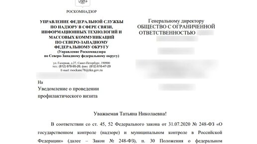 Как узнать о проведении профилактического визита Роскомнадзора?