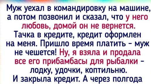 Близким людям принято доверять. Но иногда родственники, супруги и друзья творят такую дичь, что начинаешь сомневаться, действительно ли они дорожат вашими отношениями. А в конце статьи вас ждет нетривиальный бонус о том, что некоторые близкие умеют чудить со знаком плюс. Муж уехал в командировку на машине, а потом позвонил и сказал, что у него любовь, домой он не вернется. Тачка в кредите, кредит оформлен на меня. Пришло время платить — муж не чешется! Ну, я взяла и продала все его прибамбасы для рыбалки — лодку, удочки, коптильню...