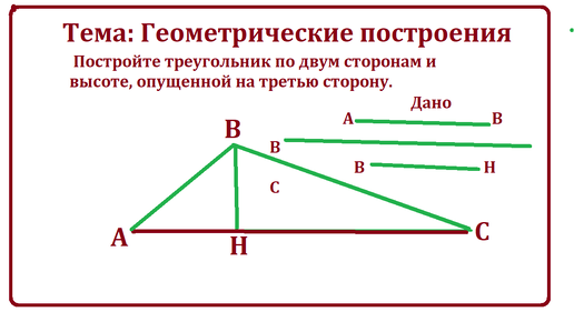 Приветствую читателей и подписиков канала Тесты_математика! Рассмотрим ещё одну задачу на построение треугольников. Этот класс задач мало рассматривается в программе математики, и в основном рассматриваются стандартные задачи построения треугольников. Данная задача на построение входит в перечень задач,вкулючённых в задачники по внеклассной работе. Кроме того, такие задачи развивают пространственное воображение не только учащихся, но и взрослых. Тема: Геометрические построения Тема: Геометрические построения § 5