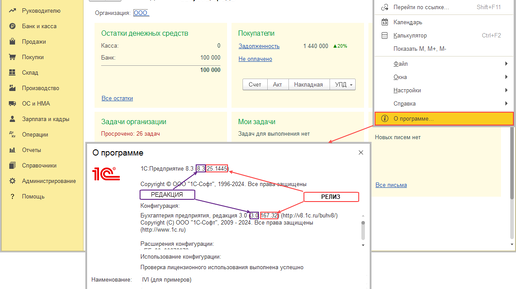 Чтобы узнать версию платформы 1С, установленной на вашем компьютере, нужно выбрать в главном меню программы: Справка → О программе Посмотрите данные о редакции и релизе платформы / конфигурации. "Редакция" – это идентификатор платформы / конфигурации. Новая редакция появляется, только если внесены значительные изменения в платформу или конфигурацию...