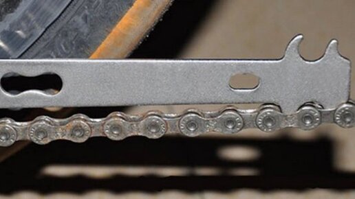 Для того чтобы измерить растяжение цепи необходим специнструмент, но есть такой чудесный инструмент, это штангенцыркуль. С его помощью можно элементарно настраиваться с измерением. Что нам нужно, выставляем для начало на штангенцыркуле размер 119 мм...