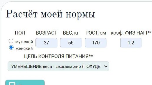 ввести свои данные в программу расчёта нормы на KgMinus.ru и она посчитает )))
