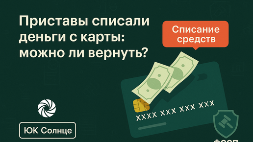Ситуация, когда приставы внезапно списали деньги с банковской карты, знакома многим. Особенно болезненно это, если с карты ушла зарплата, пенсия или пособие, и других источников денег у человека нет. Важно понимать: во многих случаях часть средств можно вернуть, а единственный доход - защитить на будущее. В этой статье разберем, что делать шаг за шагом и когда имеет смысл обратиться к юристам «ЮК Солнце». Правила установлены Федеральным законом № 229-ФЗ «Об исполнительном производстве». В общих...