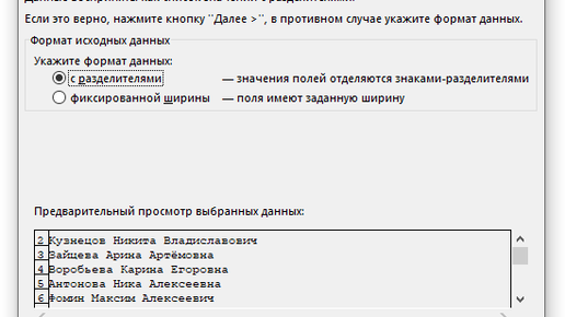 Допустим у вас есть список с ФИО сотрудников. И вам для определенных целей необходимо, чтобы фамилия, имя и отчество были в отдельных ячейках. Выделите список, текст которого надо разделить по столбцам. Далее во вкладке Данные в группе Работа с данными выберите Текст по столбцам. Откроется окно мастера распределения текста по столбцам. Выберите формат данных с разделителями, нажмите Далее. Во втором шаге выберите символ-разделитель. Если разделителей несколько - выберите нужные. Тут же ниже вы можете увидеть результат, каким он будет...