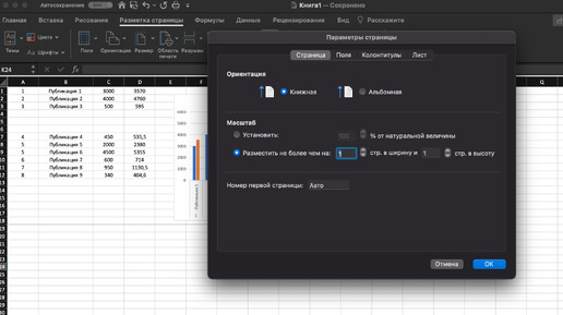 Как видно из скриншота выше. У нас таблица и расположенная рядом диаграмма не помещаются на одну страницу листа А4...