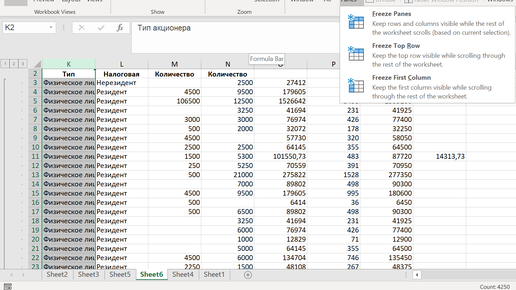 Как в Exel сделать так, чтобы первая строка или столбец не двигались