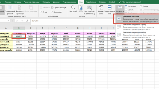 Как в Excel быстро закрепить несколько строк и столбцов одновременно