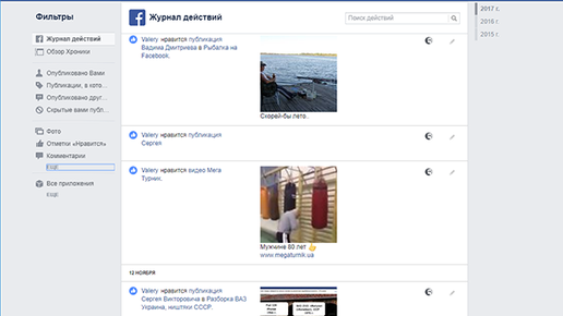 История активности пользователя в Facebook: журнал действий и геоданных, поиск, сообщения