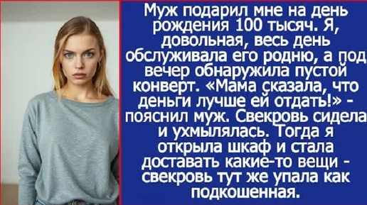 Муж подарил мне на день рождения 100 тысяч Я, довольная, весь день обслуживала его родню, а под вечер...