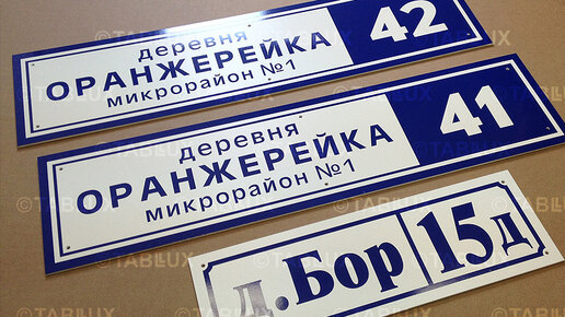 Два волшебных слова "табличка" и "дом" знает каждый гражданин нашей прекрасной страны. Означают эти слова для нас очень много... В этой полезной статье мы расскажем вам обо всех юридических и технических моментах, связанных с адресными вывесками - какие законы про адресные таблички придумали наши чиновники, как правильно выбрать адресную вывеску на свой дом, какие материалы используют производители, какой правильный размер таблички для дома, нужный цвет вывески, форма таблички, оптимальные сроки изготовления и конечно же ошибки при проектировании и изготовлении табличек на дом...