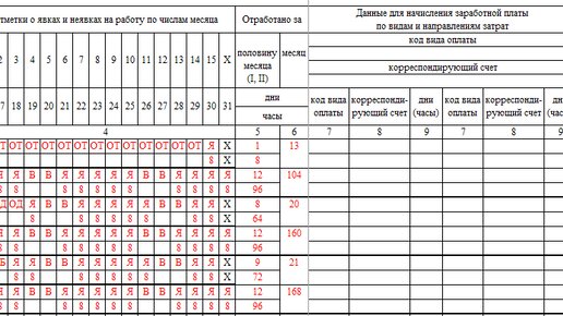 Если табель рабочего времени вы ведете по унифицированной форме № Т-12 или № Т-13, для обозначения ежегодного отпуска используются коды ОТ или 09. Дополнительный оплачиваемый отпуск обозначается кодами ОД или 10. Отпуск без сохранения зарплаты — ДБ или 18. Как это выглядит, смотрите на условном примере: Учитывайте, что при отражении отпуска в табеле за май будут нюансы — из-за праздников и переноса выходных...