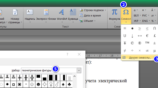 Кому:Александр Радаев Чтобы в ворде вставлять обычные символы, похожие на геометрические фигуры: