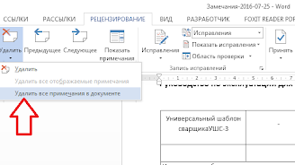 Удаление примечаний определенного рецензента