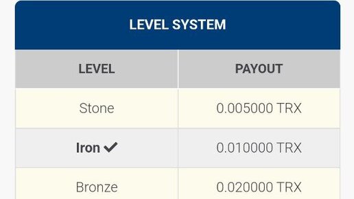 Тронпик - это кран + опросы и офферы + различные игры. Что же в нем такого, что отличает от похожих активностей, ради чего я обратил внимание? Это Level system, т.е. система уровней где доход за клайм растет кратно от одного уровня к другому. На картинке мы видим увеличения награды за клайм от уровня к уровню, а прохождение уровней зависит от количества прошедших через ваши руки монет. На картинке мы видим что для достижения 3-го уровня мы должны прокрутить 500 трон - это эквивалент 55$, чтоб достичь второго уровня я обернул 50 трон - это 5,5$ и это просто и быстро...