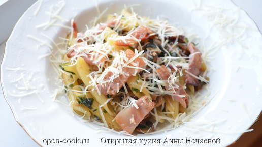 Сегодня у нас макароны Penne Rigate с копченой грудинкой. Очень сытный ужин, надо вам сказать.