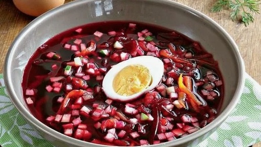 Вкусный свекольный борщ! Рецепт прекрасного первого блюда для летнего обеда. Подготовить продукты. Свекла - 400-500 г, Морковь - 100-150 г, Огурцы - 3-4 шт., Яйца - 2 шт., Зеленый лук - 1 пучок, Зелень укропа и петрушки - 0,5 пучка, Сахар - 1 ст. ложка, Соль - 1,5-2 ч. ложки, Уксус - 3 ст. ложки, Сметана - 0,5 стакана Начинаем готовить. Приятного аппетита! Разница между холодным борщом и свекольником заключается в их составе и приготовлении: Таким образом, холодный борщ ориентирован на мясной бульон, а свекольник — на свекольный отвар и дополнительные ингредиенты...