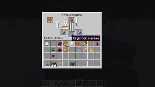 Всем привет! В этой статье я покажу подробно все зелья и как их варить. Начнем с того какие ингредиенты существуют: Сахар, незерский нарост, маринованный паучий глаз, паучий глаз,огненный порошок, сгусток магмы, сверкающий ломтик арбуза, золотая морковь, кроличья лапа, черепаший панцирь, редстоун пыль, светокаменная пыль, слеза гаста, мембрана фантома, иглобрюх и драконье дыхание. Чтобы приступить к зелье варению, сделаем зельеварку из 3 булыжников и 1 огненного стержня. Крафт на фото ниже. Этап 1: в зельеварку вставим в качестве топливо - огненный порошок...