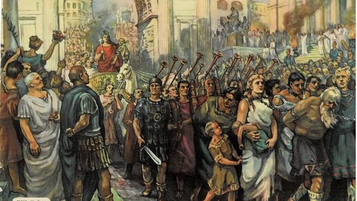 Триумф в древнем Риме являлся торжественным вступлением победоносного полководца и его армии после завершения войны, военной кампании или битвы. Триумф присуждался в случае победы, в результате которой было уничтожено более пяти тысячи врагов. До дня триумфа полководец победитель не имел права пересекать границы родного города. В назначенный Сенатом день он в составе торжественного шествия, начинавшего путь на Марсовом поле, через триумфальные ворота въезжал в Рим. Тысячи граждан собирались вдоль...