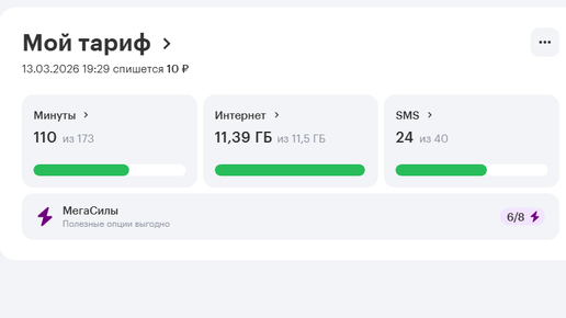 Я не пользовался симкой где-то полгода, лежало там 10 рублей и лежало. Я перешёл с платного тарифа в 500 р. на 0 р. в месяц. Платишь только за то, сколько разговариваешь, и забыл вообще про «МегаФон». Потому что много раз замечал, что списывали деньги, когда даже не тратишь весь пакет услуг, и с переносом остатков, и всякими мегасилами у меня всего было навалом. Просто порой не успевал внести вовремя сумму и уходил в минус. В один момент меня это стало напрягать, я стал искать подходящий тариф или вообще другого оператора, что, кстати, успешно и сделал потом...