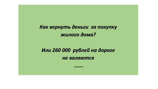 Как вернуть деньги за покупку жилого дома? Или 260 000 рублей на дороге не валяются. …….