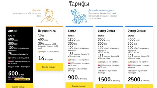Билайн внезапно объявил об обновлении тарифов для Москвы и области. Внимание! Обновление: 16 октября 2019 года Билайн обновит тарифы и для других регионов: подробнее. Мобильный оператор отправил почти все свои тарифы в архив и закрыл их для новых подключений: «Би+», «Первые гиги», «Анлим», «Супер Анлим», «Двойной Анлим», «Семья», «Супер Семья», «Супер Семья +». Эти тарифы останутся с прежними параметрами. Вместо них теперь доступны обновлённые: «Би+», «Первые гиги», «Анлим», «Семья.Акция», «Семья», «Семья+», «Супер Семья», «Супер Семья+»...