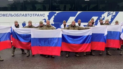 Минобороны РФ показало видеоролик с возвращёнными с подконтрольной киевскому режиму территории российскими военнослужащими. На видео военнослужащие стоят с российскими флагами у автобуса и кричат "Ура!", а затем садятся в него. "Россия! Россия! Ура! Ура! Ура!" - кричат военнослужащие после посадки в автобус. Ранее Минобороны РФ сообщило, что в соответствии с достигнутыми в Стамбуле российско-украинскими договоренностями, с подконтрольной киевскому режиму территории возвращены 185 российских военнослужащих...