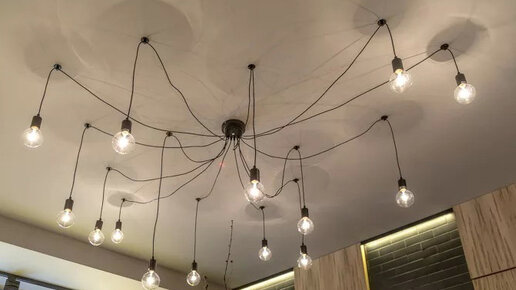 Люстра-паук: правила установки Люстра-паук имеет основание, как у подвесных или потолочных люстр, но не имеет рожков. Вместо рожков у нее шнуры с лампочками, которые хаотично подвешиваются непосредственно к потолку. Этот осветительный прибор очень эффектен и интересен. В последнее время особенно востребован в стиле лофт. Благодаря необычному расположению ламп, позволяет более функционально осветить помещение, ведь каждая лампочка может располагаться и на разном расстоянии от центра, и на разной высоте...