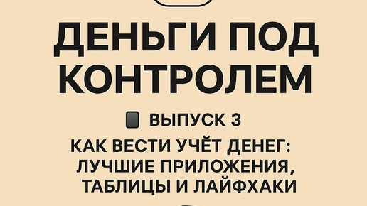🟠 СЕРИЯ | Деньги под контролем 📱 Выпуск 3: Как вести учёт денег: лучшие приложения, таблицы и лайфхаки Когда начинаешь считать — начинаешь понимать. Пока траты в голове, они кажутся невесомыми. Но стоит записывать их хотя бы пару недель — и вы увидите свои «финансовые повадки» в чистом виде. Это уже половина успеха. Сегодня расскажу, как вести учёт денег так, чтобы не бросить через три дня — и какие инструменты реально работают в России. 🔧 Вариант 1: Приложения на смартфоне Подходят тем, кто хочет видеть аналитику, графики и уведомления...